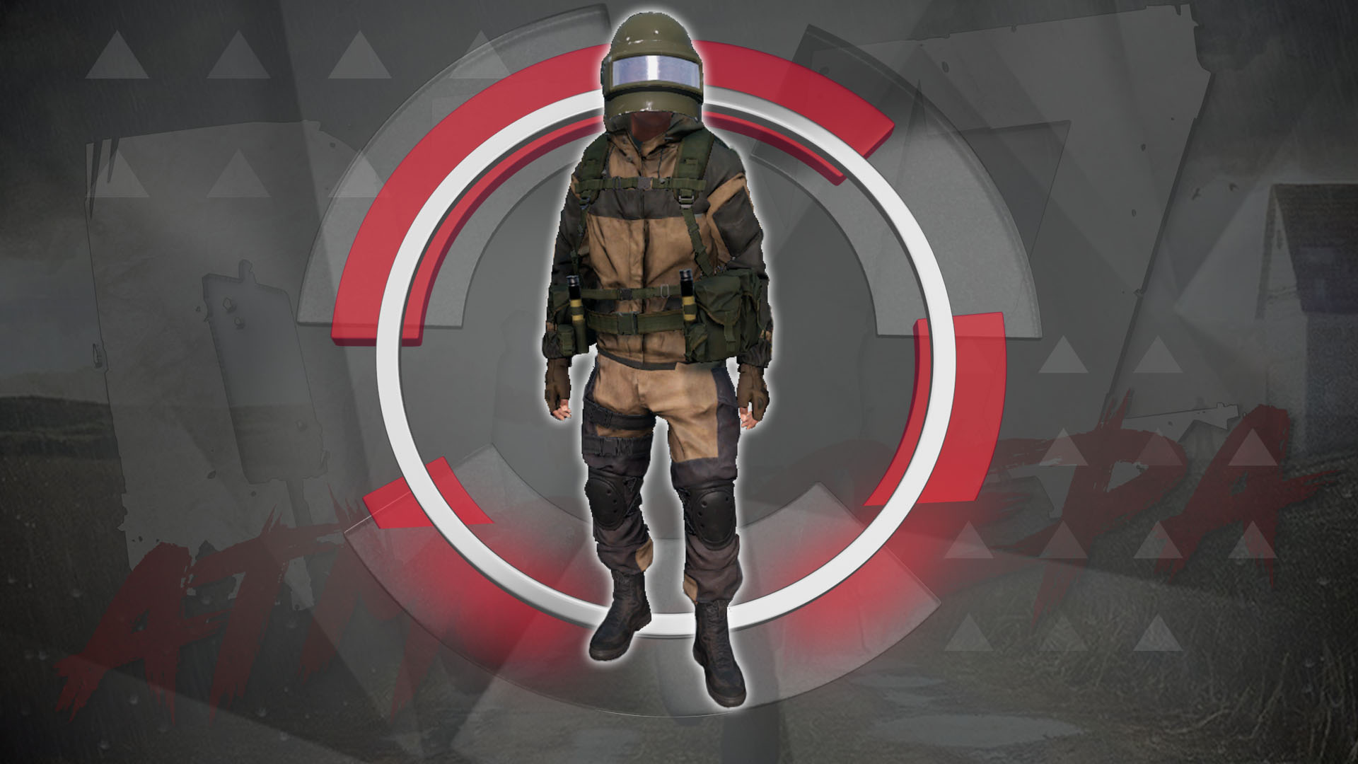 Состав: куртка с броником (250 слотов), разгрузка (250 слотов), штаны 64 слота, ботинки, перчатки, экзо-пояс, шлем, с открывающимся забралом. Защита от заражения 100%, грузоподъемность 150 кг.