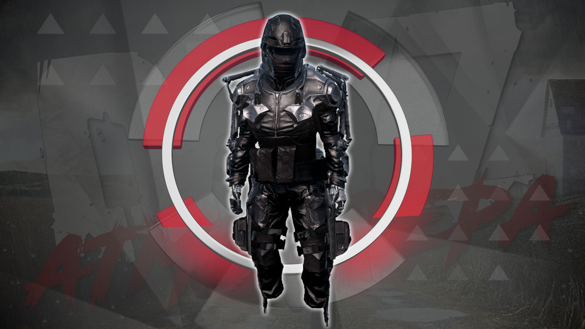Состав: Тело(72 слота), ноги(36 слотов), шлем(крепится ПНВ, фонарик), экзо-перчатки, экзо-ботинки. Грузоподъемность 210 кг, защита от заражения 100%.
